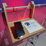 Op de desk wordt een smartphonehouder met beveiliging bevestigd en een uitleg zodat de bezoekers van het festival de telefoon kan gebruiken om een bepaalde app uit te proberen.